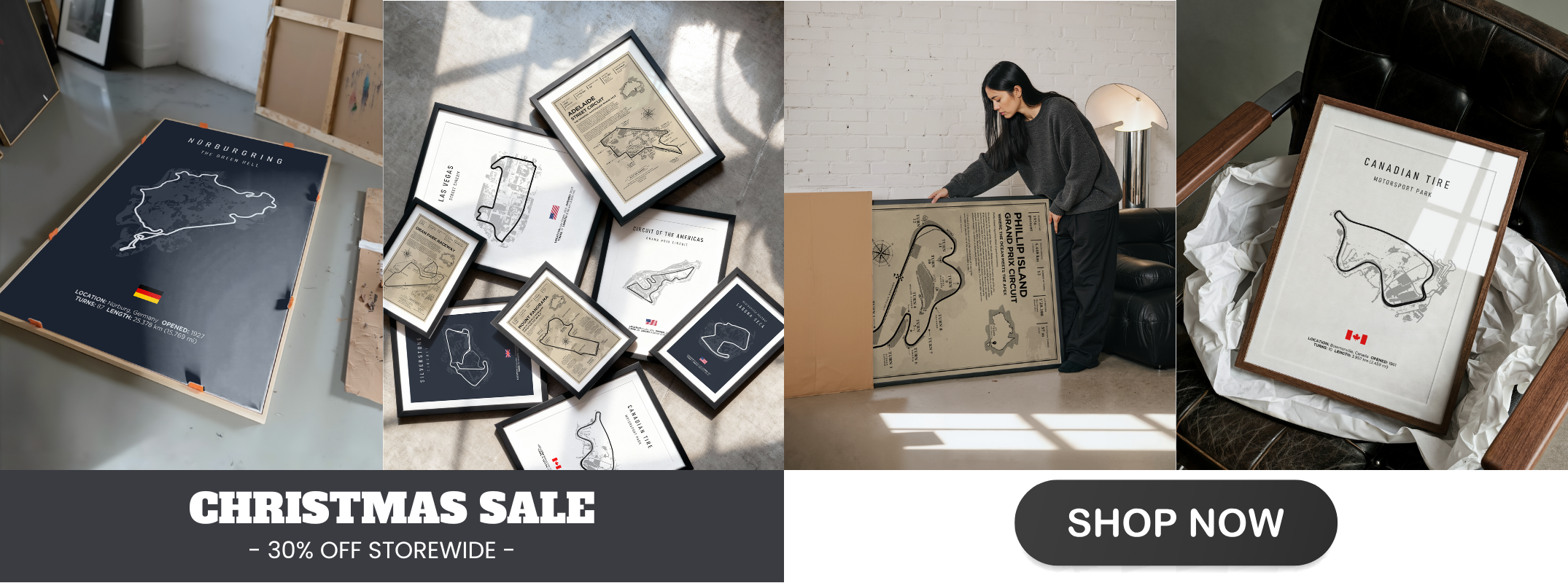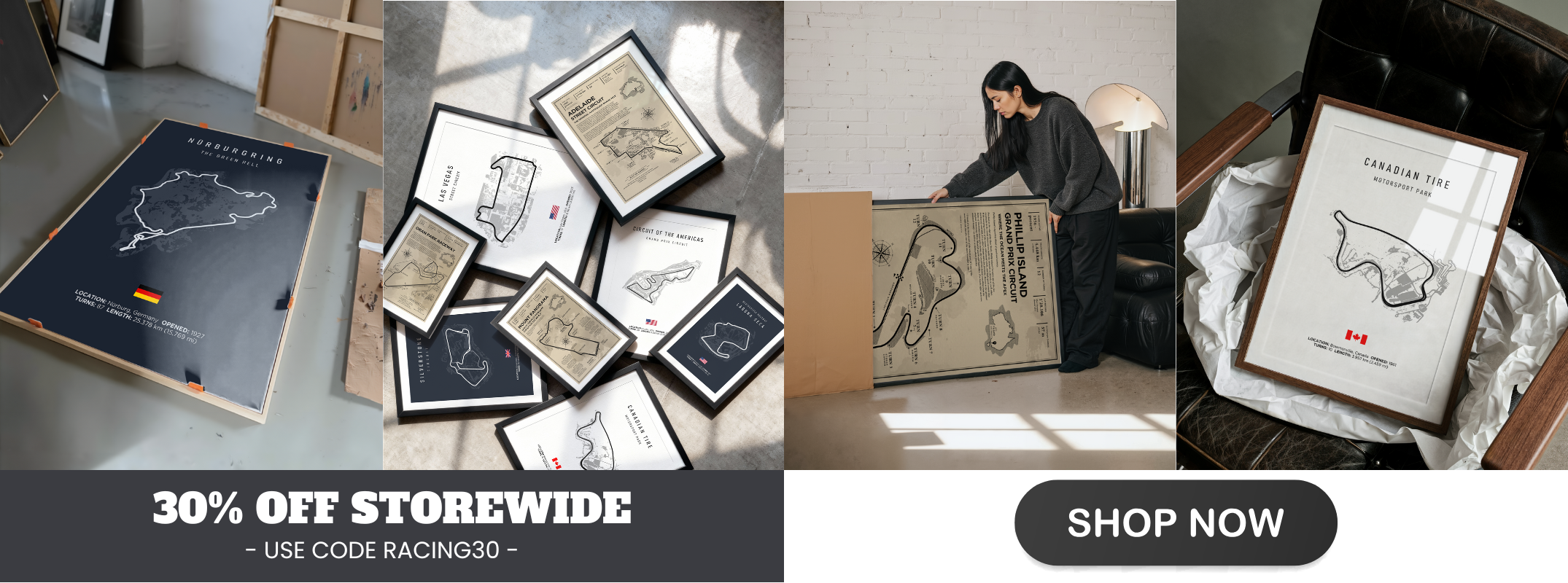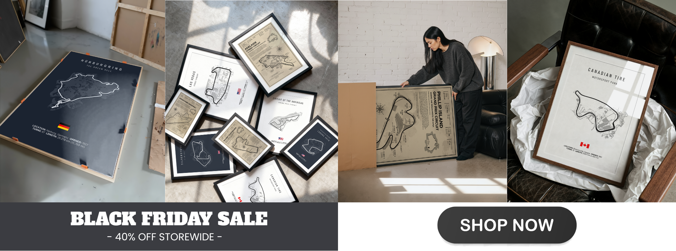 Discover our exclusive collection of vintage-inspired racetrack posters, meticulously crafted to honour the world’s greatest circuits across every corner of motorsport. From the sweeping curves of Mount Panorama and the electrifying streets of Surfers Paradise, to the storied asphalt of Monaco, Nürburgring, Laguna Seca, Daytona, Silverstone, and beyond — each print captures the unique spirit, heritage, and adrenaline of the tracks that shaped racing history. Printed on premium canvas, every piece blends timeless vintage design with the intricate details of each circuit’s layout. Whether you love Formula 1, Supercars, MotoGP, IndyCar, endurance racing, or legendary grassroots circuits, this collection transforms your space into a tribute to global motorsport culture — celebrating the corners, straights, and stories that define the sport we love.